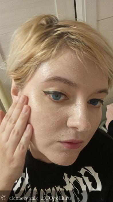 Итак приступим к применению. На сухую кожу наносим небольшое количество гидрофильного и смываем тепленькой водичкой. Как многие знают гидрофильное масло при соприкосновении с водой превращается в молочко. Тут оно очень легкое и хорошо смываемое.