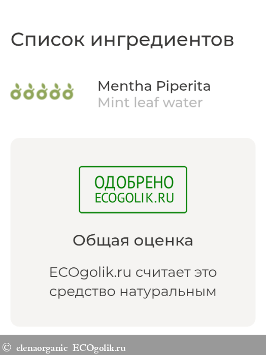 Mint (mentha piperita) leaf water (гидролат мяты – продукт пароводяной дистилляции листьев мяты перечной).