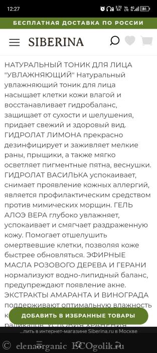 elenaorganic: Тоник для лица увлажняющий SIBERINA