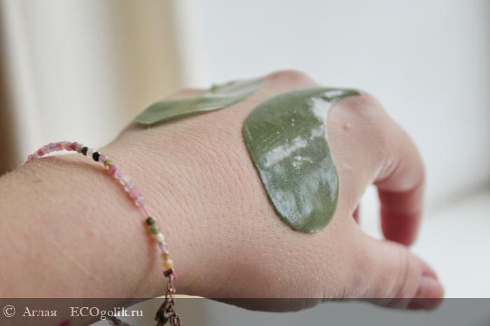 Замечу еще, что он хрупкий и скользкий, поэтому вынимать и распределять его лучше ложечкой. Он хорошо и плотно ложится на лицо. И после высыхания не рвется, не ломается. А ровно так же целиком и снимается.