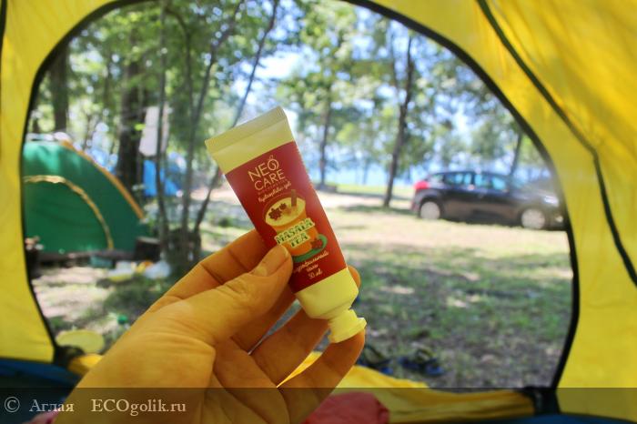 Я пользуюсь этим гелем не каждый день, что было бы вообще не практично, потому что его в тубе совсем мало. Замучаешься покупать. У меня он предназначен для походов и поездок. Там я хочу видеть в чемодане минимум косметики, и Neo Care в этом помогает.