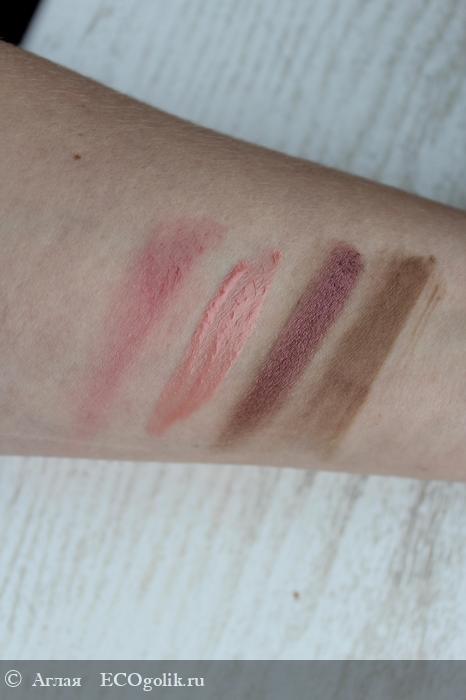 Я проверила гель на натуральной косметике - блесках для губ, тенях для бровей, румянах и тенях для лица