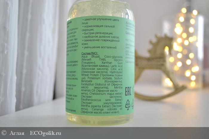 По поводу аромата - это мои личные предпочтения, но мне он не нравится. В составе есть экстракт эвкалипта, и умывалка отчетливо пахнет именно им. Я не особенно люблю эвкалипт. Как раз-таки против мяты я бы ничего не имела. но здесь она не дает о себе знать.