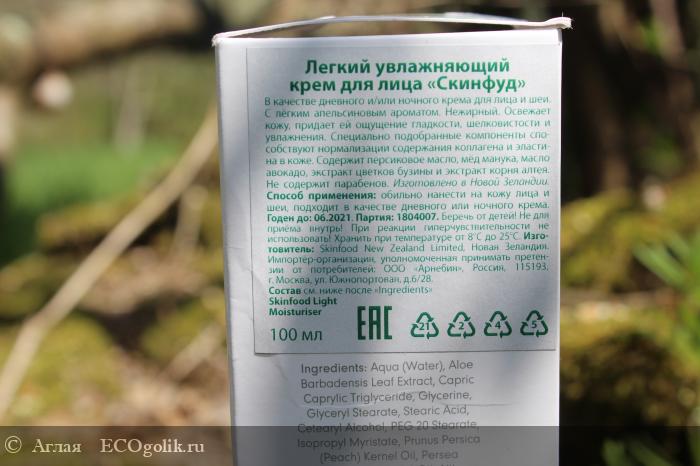 Аглая : Легкий увлажняющий крем для лица Skinfood New Zeland - удачная покупка