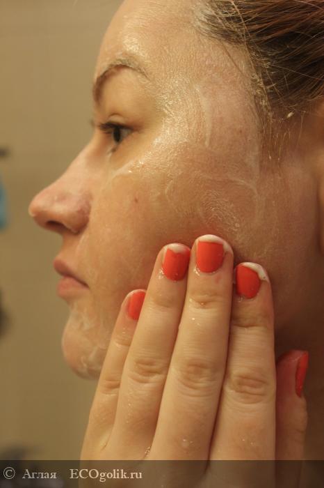 Кожа после умывания не стянута, что в принципе нормально для хорошего мыла, содержащего много увлажняющих компонентов. Макияж полностью смыт. Но я не увлекаюсь таким споосбом демакияжа: это может создать проблемы с липидным слоем да и в целом с кожей лица. Но когда совсем нет времени на качественный демакияж, в дУше можно разок умыться и помыться таким мылом.