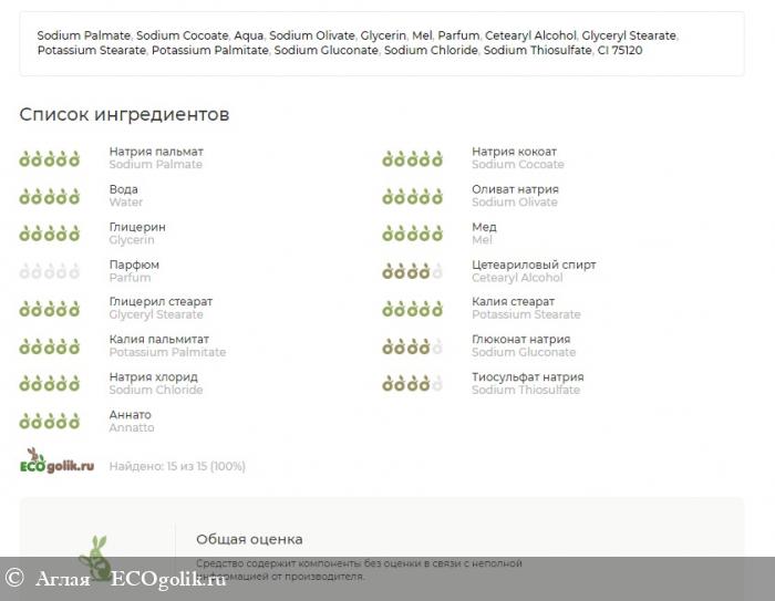 Я проанализировала состав с помощью сервиса от Экоголика, чтобы убедиться в натуральности каждого ингредиента. И вот что он показал.