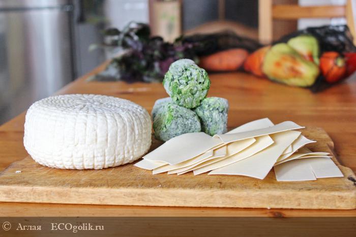 Для начинки мне нужен любой мягкий козий сыр. В рецепте шла рикотта, но она откровенно дорогая для моих целей. И я вспомнила про адыгейский сыр. Т.к. я живу в Адыгее, на родине этого козьего сыра, то у нас он продается на каждом углу, всегда свежий и домашний, а не заводской. Я покупаю его почти каждый день к столу, он у нас не дорогой. Головка весом 0,5 кг стоит 140 рублей.
