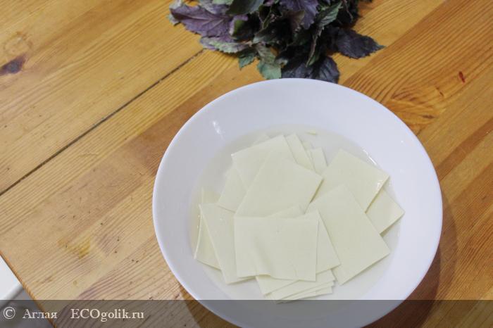 Обязательны листы лазаньи, которые могут стоить и до 300 рублей (Barilla). Наиболее дешевый вариант - бесбармачная лапша, которая так же была у меня дома. А почему, собственно говоря, и нет? Пакет стоит 40 рублей.