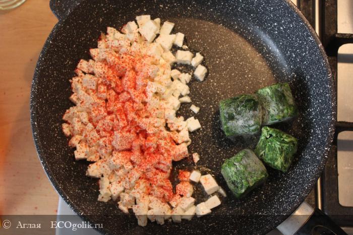 Свежий шпинат искать я поленилась, т.к. у меня в холодильнике лежала упаковка замороженного от "Четырех сезонов".