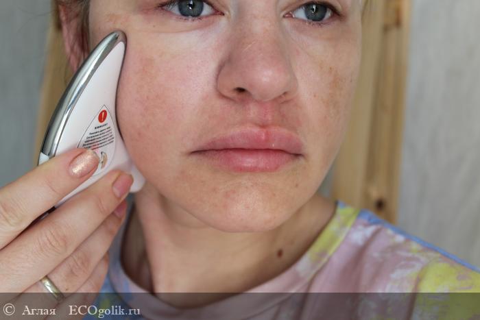 С некоторых пор я также добавляю к уходу ежедневный микротоковый массаж с прогреванием крема. Так любой уход действует глубже. Надо сказать, эта привычка в целом сделала мой внешний вид более приятным, т.к. пропала вечная отечность. Пользуюсь прибором по пять минут сразу после пробуждения, предварительно нанеся крем Shabby на лицо и второй под глаза.