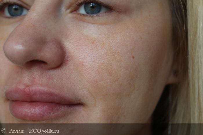 Что еще я могу отметить? Визуально заметно, что морщинки сглаживаются, т.е. заполняются. Это временный эффект, который все же делает кожу зрительно моложе. Надеюсь, что и антиэйдж эффект как-то работает в этом случае;)