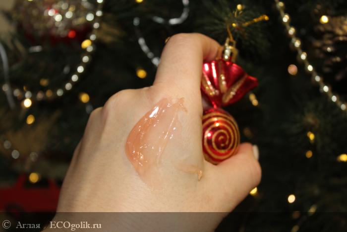 Гель имеет мягкую желейную текстуру, которая легко наносится и быстро превращается в маслянистую пленку, обеспечивая комфортное скольжение рук. Он не оставляет жирных следов, быстро впитывается и не вызывает дискомфорта.