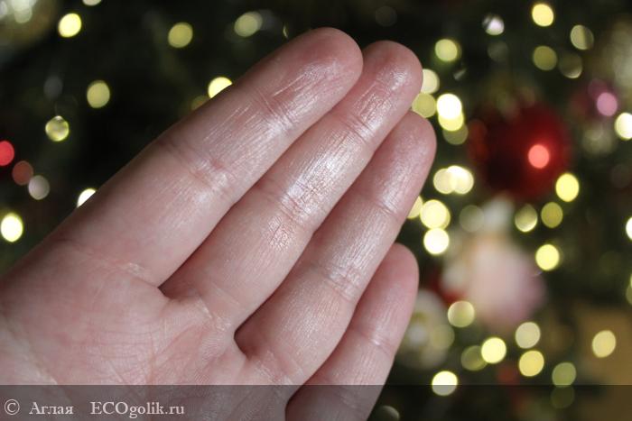 ❤ Текстура кремовая, но совершенно не жирная, а шелковистая и легко скользит под пальцами, распределяясь и ложась легким слоем на кожу. В складки он не западает и нигде не собирается.