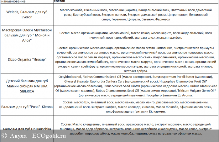 Для примера сравню один натуральный и два химических бальзама по Международной Номенклатуры Косметических Ингредиентов (INCI):