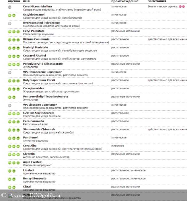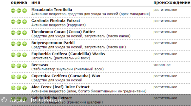 Смайлики означают оценку ингредиентов от хорошей до плохой, вредной для здоровья