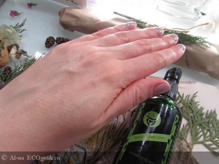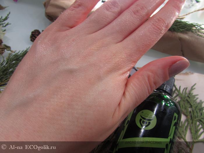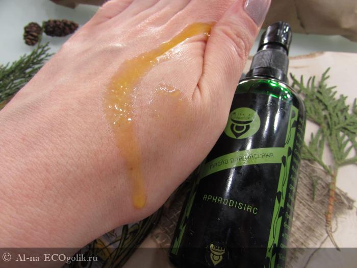 Само масло насыщенного жёлтого цвета, текучее, так что надо при массаже не зевать, а тут же аккуратно распределять его.
