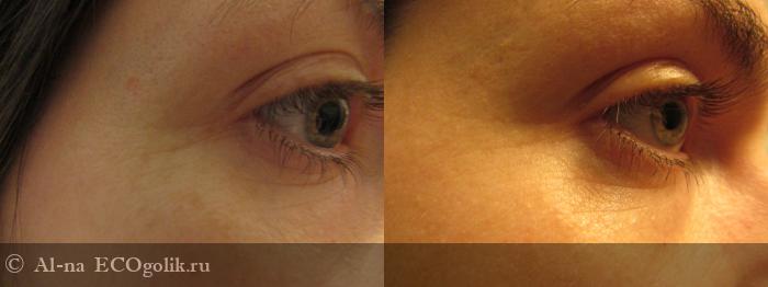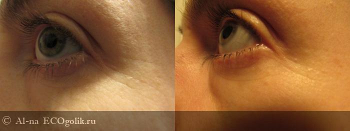 Освещение вышло немного разным, но даже на этих фото видно, как разгладились мелкие морщинки, а кожа в области век - подтянулась!