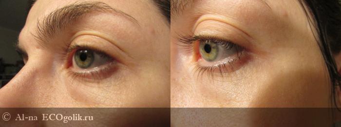 Кожа приобретает тонус, как будто подтягивается, становится лощёной и холёной - и всё это без утяжеления деликатной области век!