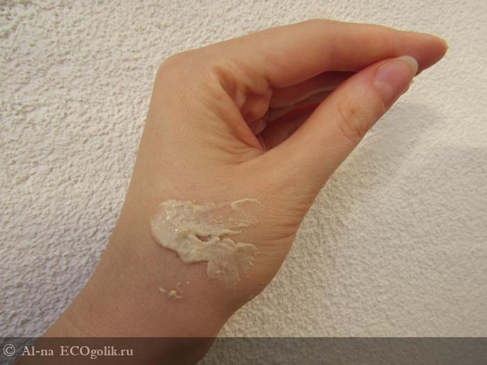 Смывается маска легко водой и руками. За счёт небольших вкраплений, как я понимаю, белой глины при смывании получается очень лёгкий скрабирующий эффект.