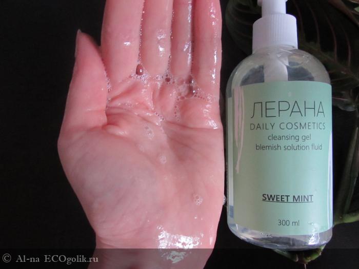Гель совершенно прозрачный, пахнет освежающе - настоящей мятой! Других ЭМ я не чувствую.