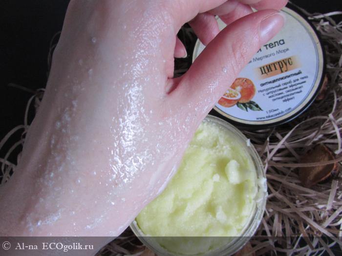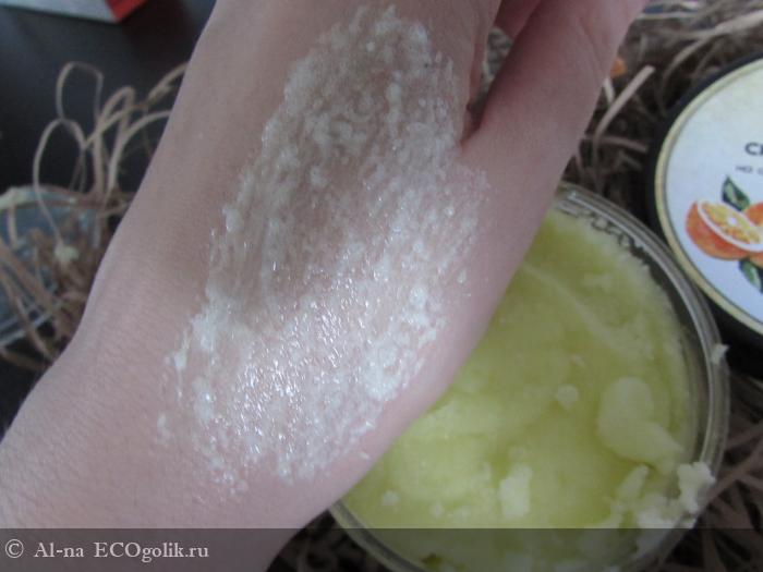 В "Цитрусе" мне не хватило скрабирующего эффекта, а также не понравился расход скраба. Этой баночки мне хватило на 2,5 раза - при условии применения на всё тело. Считаю, что этот расход довольно большой, учитывая полную стоимость.