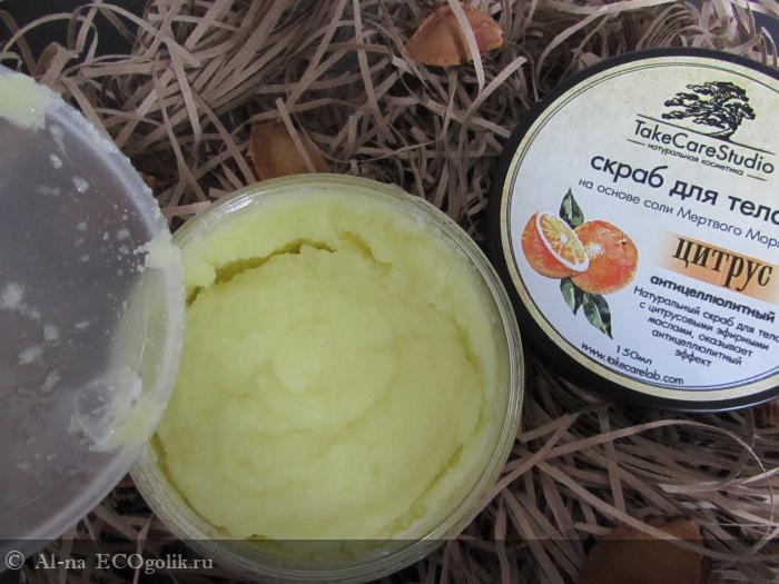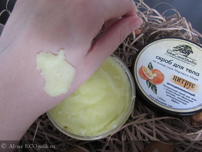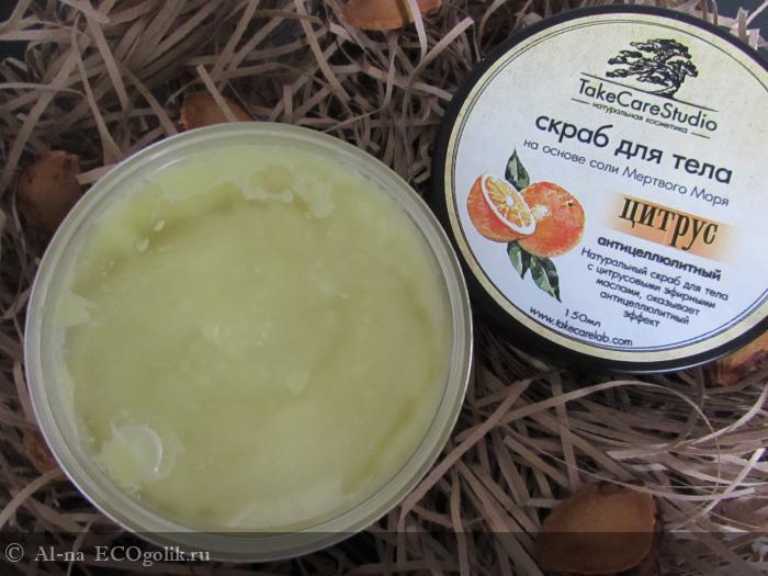Сегодня расскажу об антицеллюлитном скрабе для тела на основе соли Мёртвого моря "Цитрус" от Take Care Studio.
