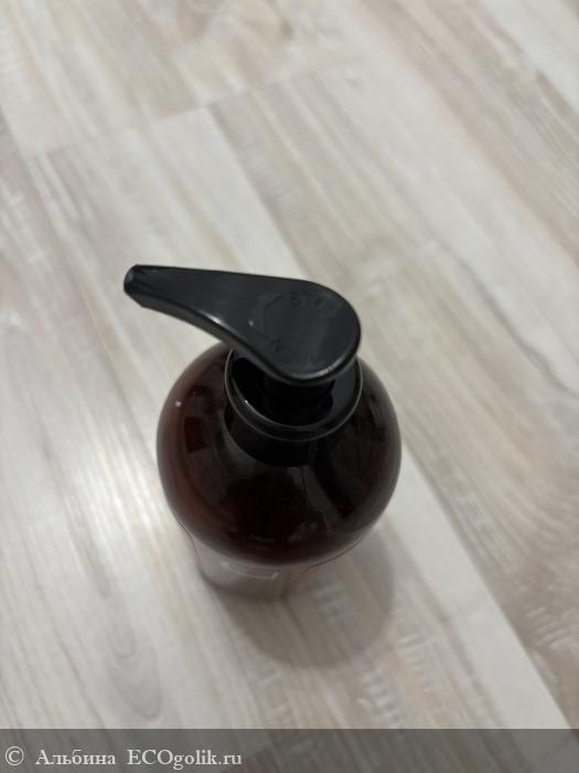 Упаковка из плотного темного пластика с дозатором