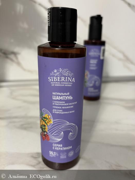 Альбина: Шампунь с кератином и гиалуроновой кислотой «Глубокое увлажнение» для сухих и поврежденных волос SIBERINA