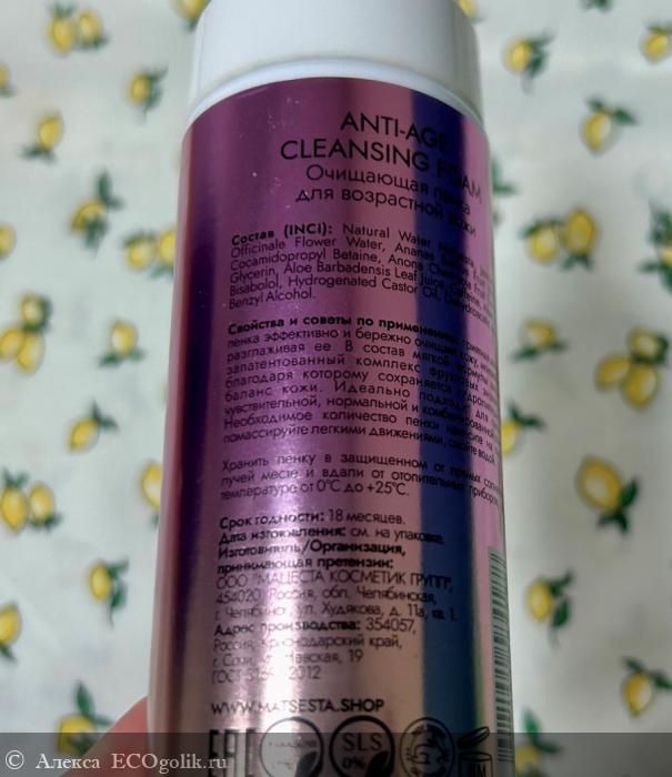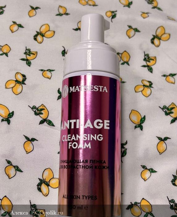 Всегда большой интерес у меня вызывают очищающие средства, потому что это важнейший процесс ухода. Ведь если плохо очистишь – и крем хуже работает. Антивозрастная очищающая пенка для зрелой кожи ANTI-AGE CLEANSING FOAM Matsesta – это очень удачный продукт, который прекрасно очищает кожу, при этом не раздражая кожу. Это очень важно, потому что с возрастом кожа становится более чувствительной, барьерные функции ухудшаются. Поэтому чистота должна быть без раздражений.