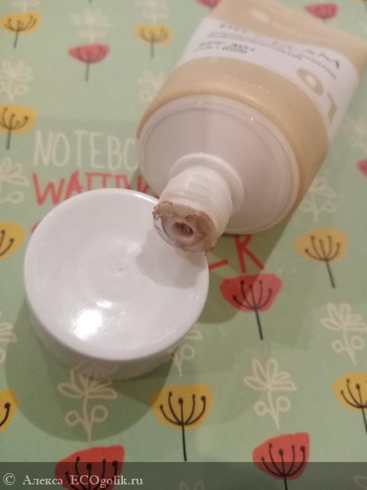 Я особенно рекомендую крем для лета, когда коже нужна не только хорошая маскировка недостатков, но и не менее важно не усугублять проблемность кожи. Этот крем минеральный, оздоравливающий, работает и против высыпаний. У меня сейчас светлый тон 01. Но он не белый, не выбеливающий. Назвала бы светло-бежевым. Он делает кожу ровной и красивой, при этом прекрасно увлажненной. Определенно этот крем я советую всем, у кого проблемная кожа, чтобы оздоровить кожу, сделать ее менее реактивной. Крем хорошо матирует, но часто использую его с минеральной пудрой, чтобы дать коже бархатистость. Пудра на крем ложится отлично.