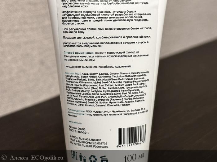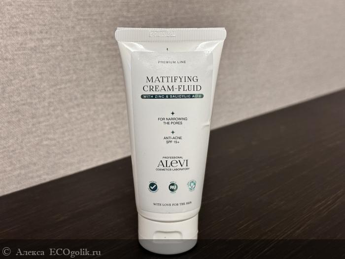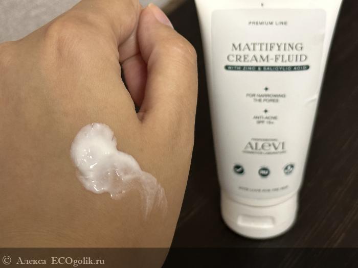 Но на данный момент я нашла тот самый идеальный крем, благодаря которому лицо не блестит жирным блинчиком, выглядит ухоженным и здоровым – это матирующий крем-флюид с цинком и салициловой кислотой SPF 15+ от Alevi.