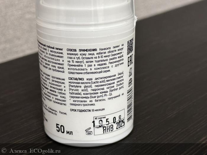Среди компонентов есть 2 вида кислоты: молочная и пировиноградная. Они глубоко очищают и осветляют кожу лица.