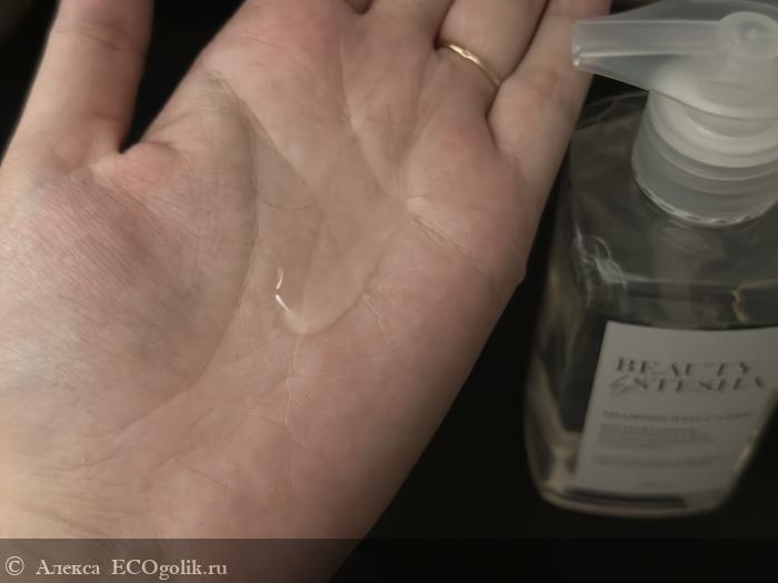 Консистенция в меру густая, цвет прозрачный. Очень приятный аромат. Пенится очень хорошо, за счет этого и расход получается экономным.