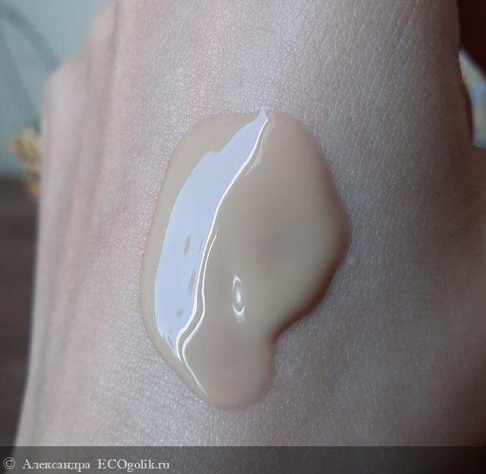Флюид наносится хорошо, и распределяется легко, поэтому расходуется довольно экономно. Но впитывается не быстро и оставляет довольно жирненький финиш, поэтому перед тем, как лечь спать, нужно выждать хотя бы 15 минут.