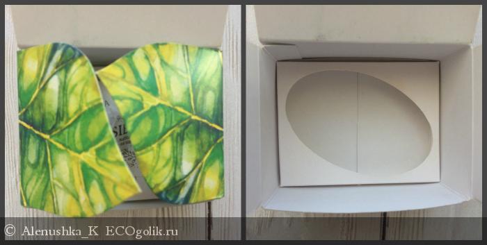 Мыло имеет редкую, двойную упаковку : во-первых, симпатичная картонная корбочка в сиреневых тонах, во-вторых, индивидуальная обертка с логотипом бренда.