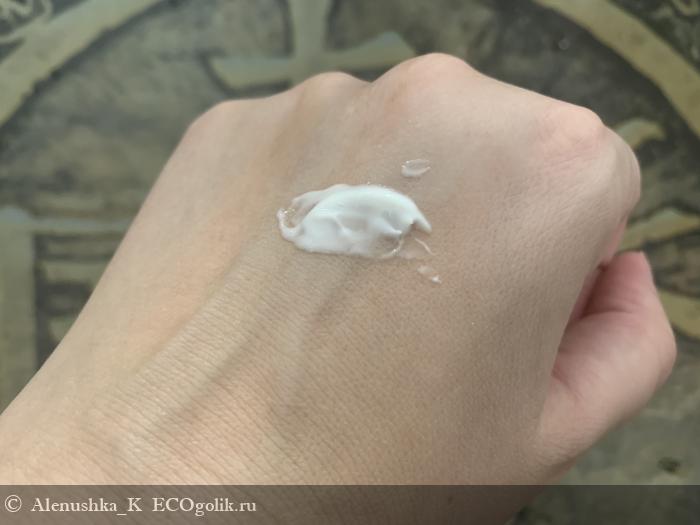 Сам крем белого цвета, достаточно легкой, но насыщенной консистенции