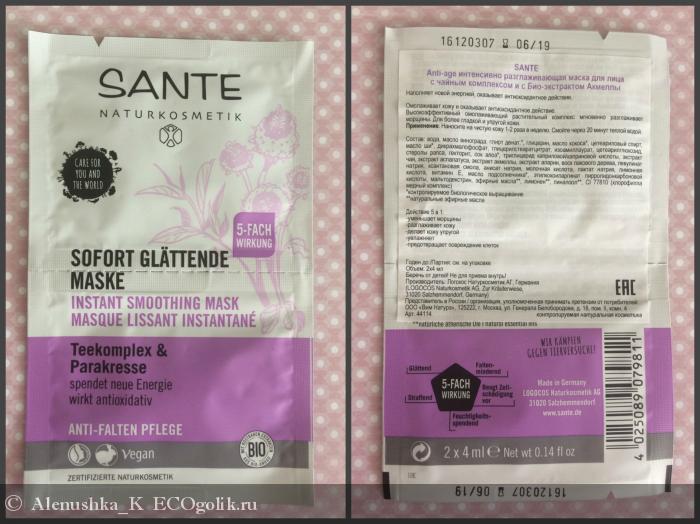 Сегодня я поделюсь с вами моим опытом использования маски Sante Anti Age Интенсивно разглаживающей. Взяла на пробу, вот такую упаковку на 2 применения: