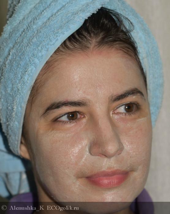 Я наносила на очищенную с помощью геля для умывания кожу ( а во второй раз - после скрабирования). Маски в упаковке оказалось не очень много, поэтому советую сначала наносить ее экономно, потом уже распределять остатки. На шею ее уже не хватает, во второй раз я наносила очень экономно и мне хватило на небольшую "аппликацию" на шее в районе начинающихся морщин. Вот так маска выглядит сразу после нанесения (все фото - с 1 эксперимента из 2х, без нанесения на кожу шеи):