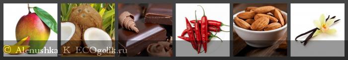 натуральное масло манго, натуральное масло кокоса, натуральный черный шоколад, экстракт жгучего перца, натуральное масло бурбонской ванили, натуральное эфирное масло горького миндаля.