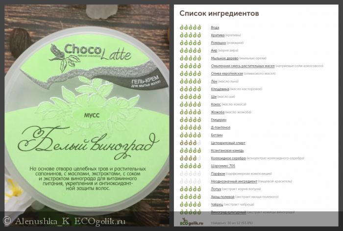 Мне, а главное моим капризным волосам, очень понравился Мусс Белый Виноград от Chocolatte,