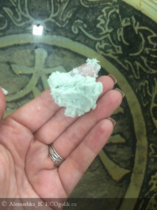 Сам продукт - имеет воздушную форму, действительно напоминающую мусс, или взбитые сливки нежного светло-ментолового цвета.