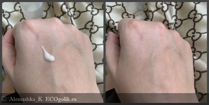Сыворотка имеет легкую, быстро впитывающуюся структуру, она белого цвета, с легким, как мне показалось, "пудровым" ароматом