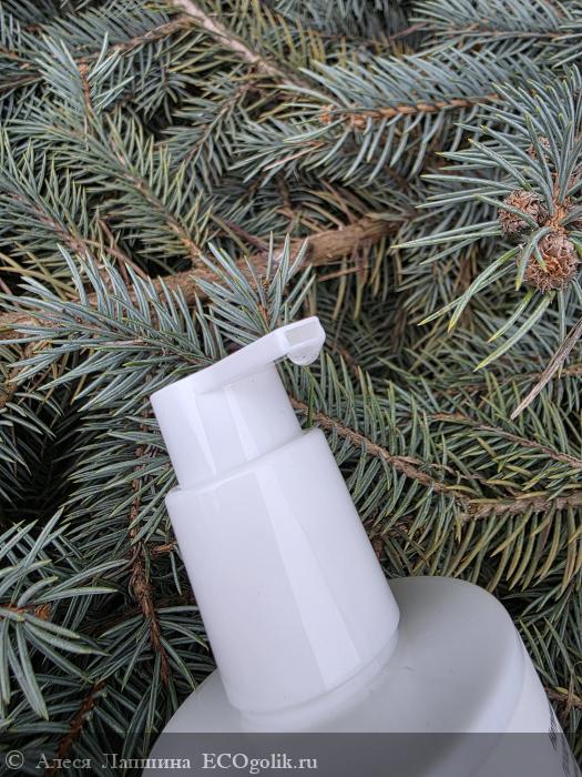 Натуральное жидкое мыло выпускается в белом пластиковом флаконе цилиндрической формы с удобным дозатором.
