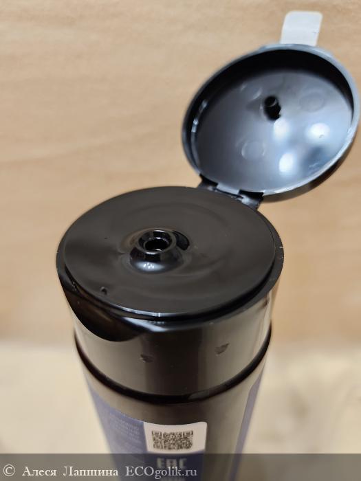 Прозрачный флакон не скроет сколько средства уже израсходовано, что определенно является плюсом. Упаковка флакона выполнена в темных тонах. Флакон эргономично ложится в руку + шершавая этикетка не позволит флакону выскользнуть из руки.