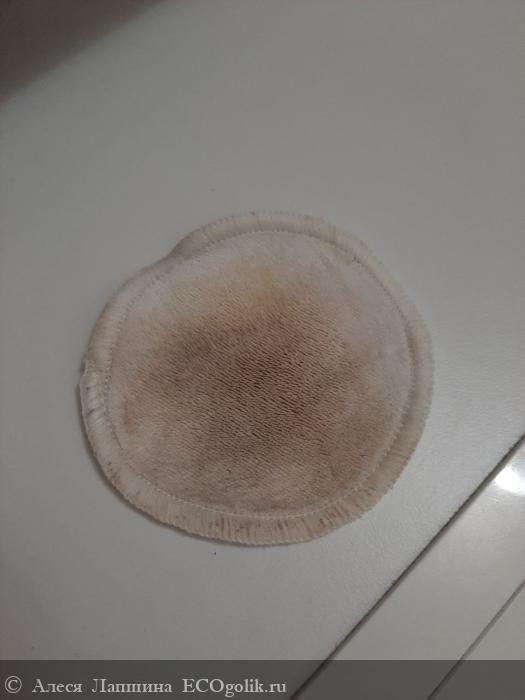Как я уже написала в начале, я в основном использую для снятия макияжа и иногда для поправления неточностей нанесения макияжа. Вечером я беру ватный диск (у меня он не ватный, а многоразовый), смачиваю диск мицелляркой и аккуратно выполняю демакияж.