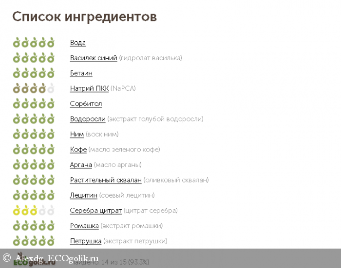 - Экстракт голубой водоросли - Богат витаминами группы В, аминокислотами. Повышает упругость и тонус кожи, сокращает морщины, увлажняет.