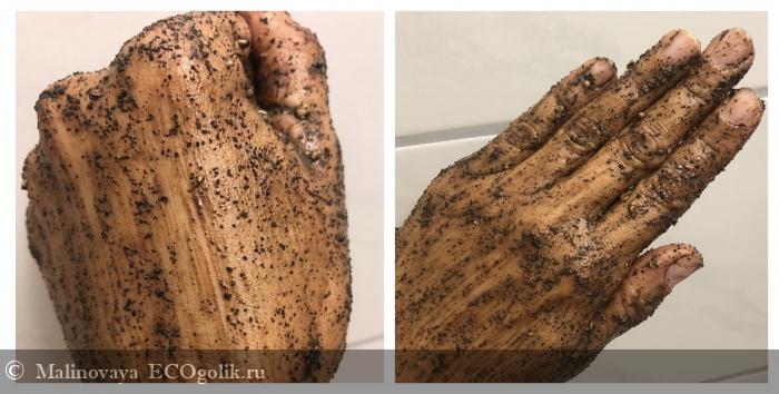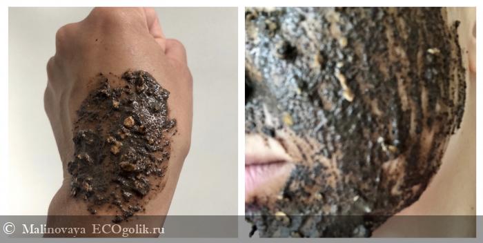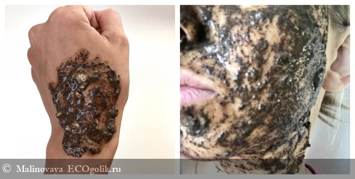 Так маска-скраб выглядит на руке и на лице: