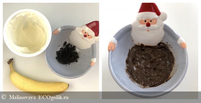 Чайная ложка кофе + чайная ложка сметаны + половина банана (если скраб пойдет на все тело, можно использовать целый банан):