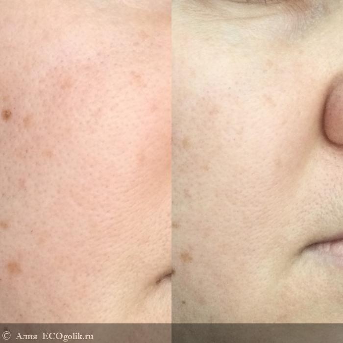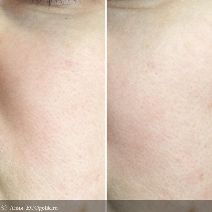 Крем сам по себе хорошо увлажняет кожу, не стягивает её и не подчеркивает шелушений. Он отлично выравнивает тон и заметно скрывает поры.