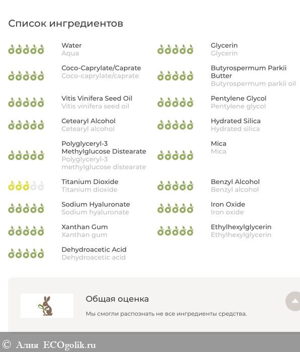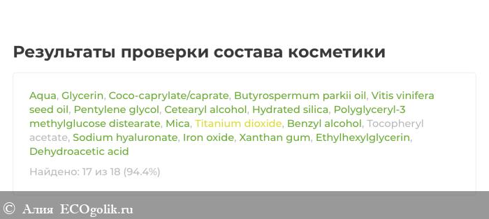 На лице выглядит крем максимально натурально, при этом он способен немного осветлить тёмные круги под глазами без дополнительных косметических средств.